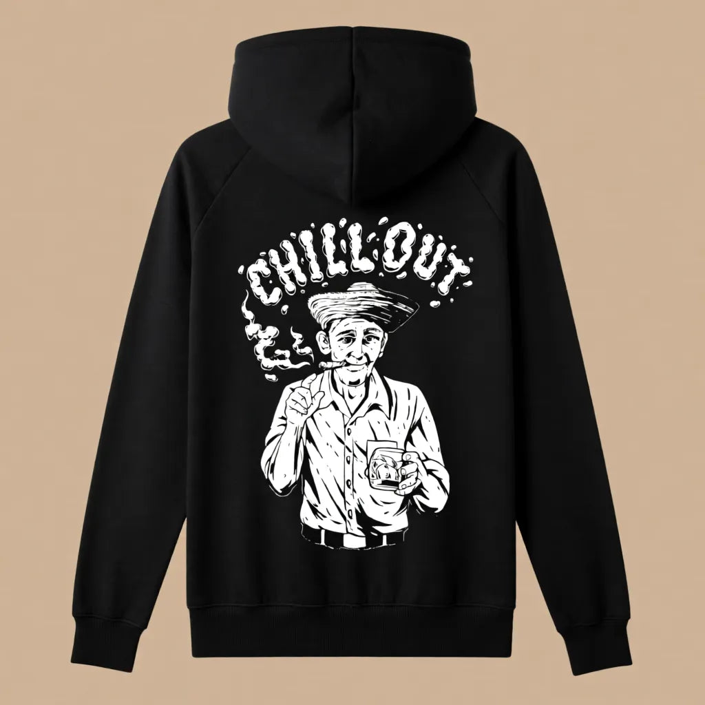 Herren Heavyweight Sweatjacke schwarz mit Siebdruck im Kuba-Stil getragen im Alltag