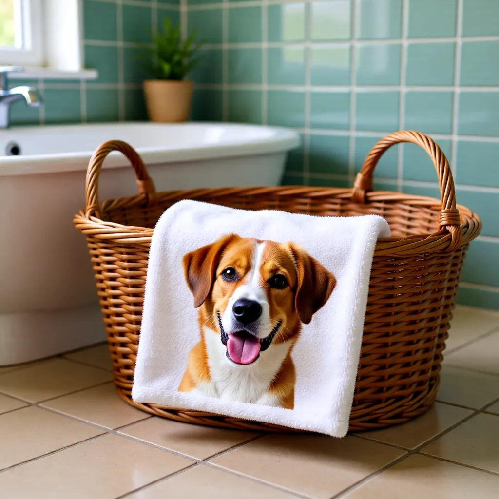 Personalisiertes Mikrofaser-Handtuch mit Hundemotiv und Baumwollrückseite, weich und saugfähig