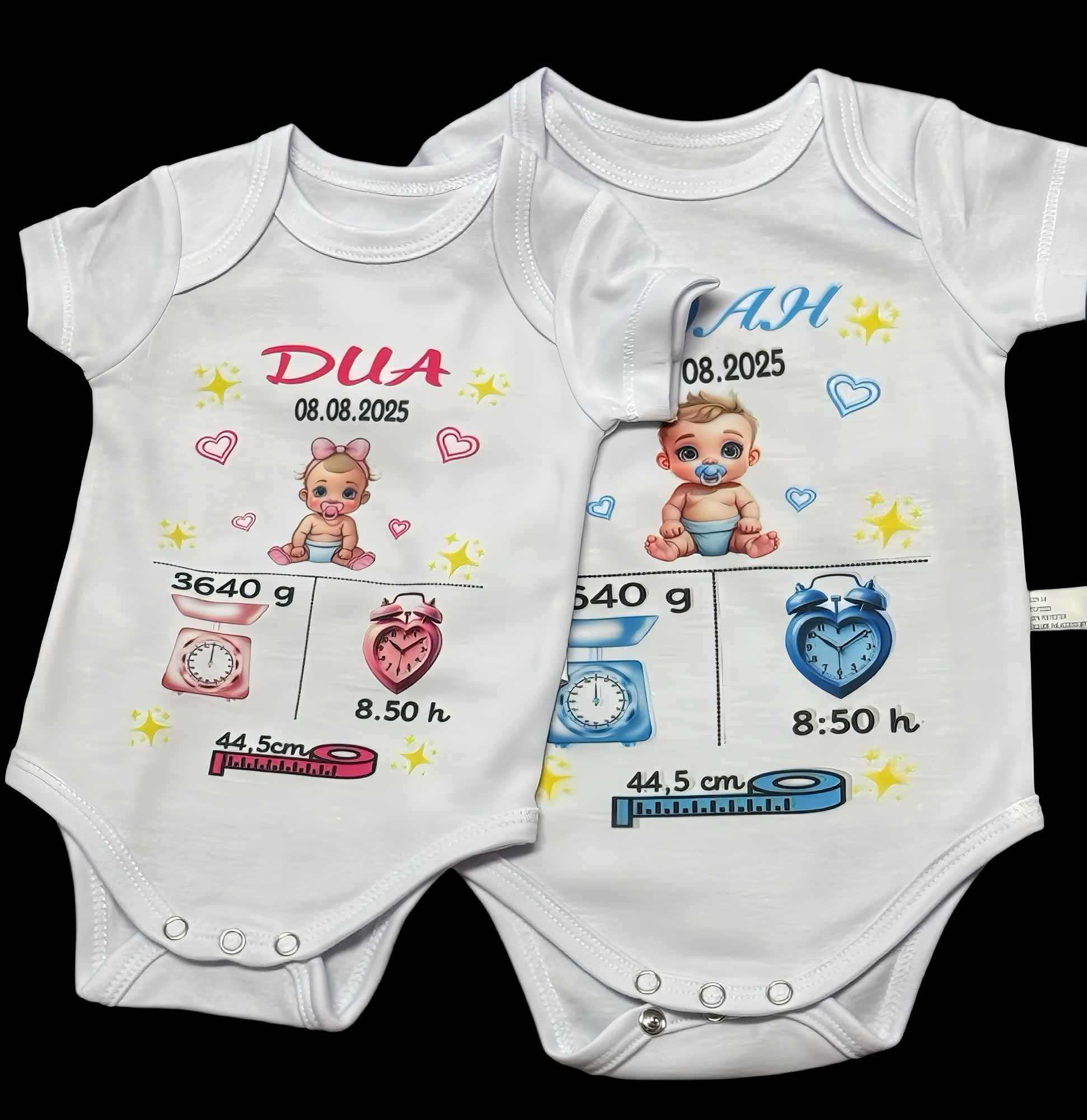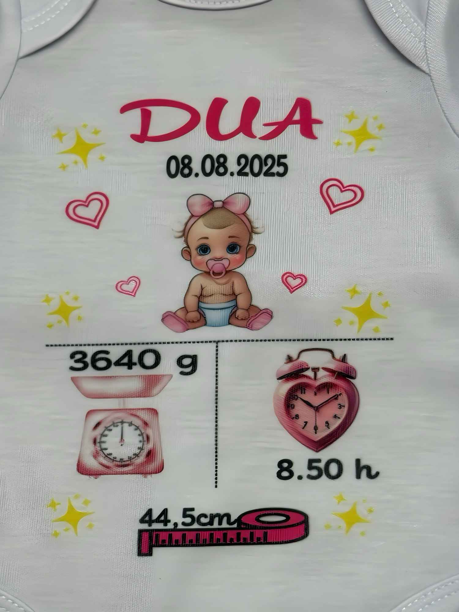 Dieses Produkt eignet sich nicht nur als Geschenk, sondern auch als langlebiges Erinnerungsstück: Nach deinem Wunsch lassen sich Geburtsdaten wie Name, Datum, Uhrzeit, Gewicht und Größe harmonisch integrieren, sodass es eine bleibende Andenkenfunktion erfüllt. Die 100 %-Polyester-Qualität sorgt dafür, dass Farben und Druck klar bleiben und der Body auch nach vielen Waschgängen wie neu aussieht. Insgesamt bietet dieser Babybody eine durchdachte Kombination aus Stil, Funktionalität und Sicherheit. Perfekt als liebevolles Geschenk zur Geburt, das Eltern und Baby gleichermaßen erfreut.